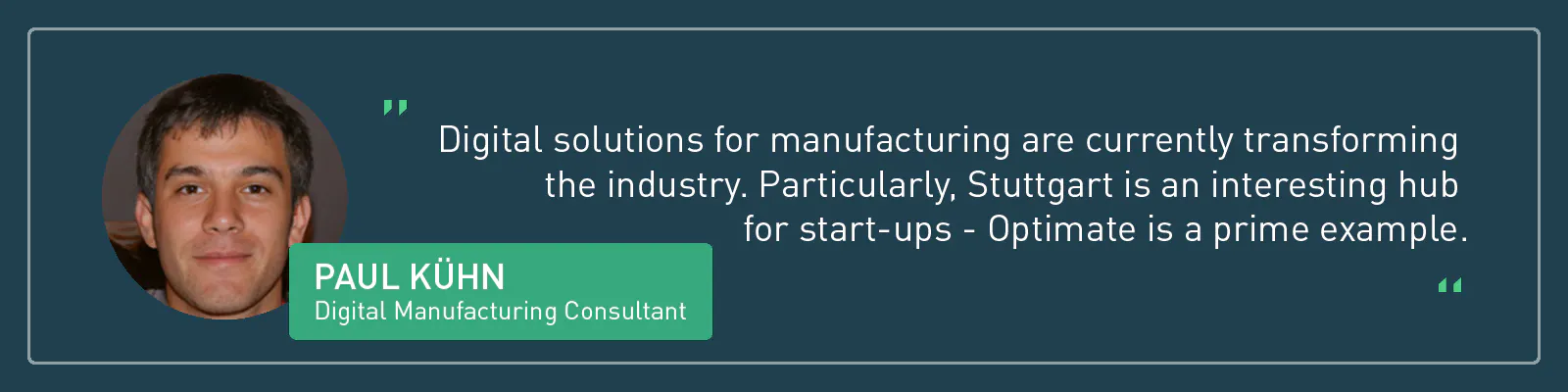 'Digital solutions for manufacturing are currently transforming the industry. Particularly, Stuttgart is an interesting hub for start-ups - Optimate is a prime example.'